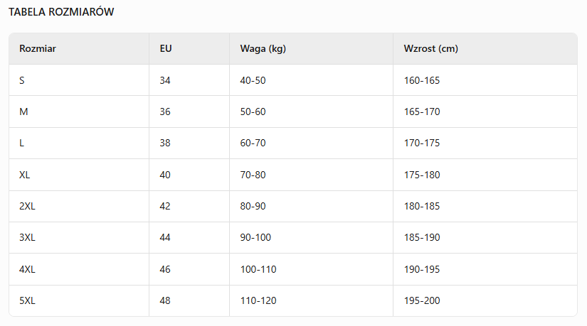 PORADNIK ROZMIARÓW