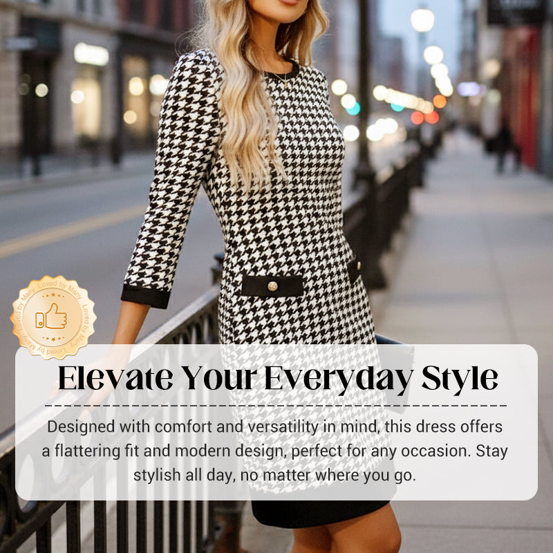 Zestaw zawiera: 1 * damską sukienkę midi z okrągłym dekoltem w pepitkę