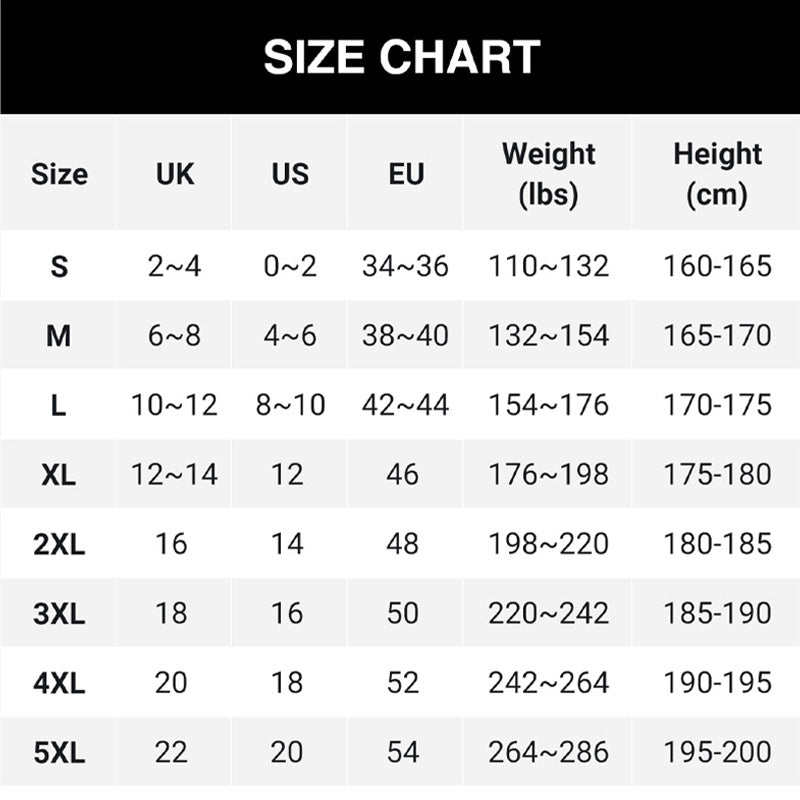 SZEROKI WYMIAROWY ASORTYMENT ROZMIARÓW – Zaprojektowany, aby podkreślać atuty każdej sylwetki. Ten zestaw jest dostępny w szerokiej gamie rozmiarów od S do 5XL, dzięki czemu z pewnością znajdziesz wygodny i podkreślający atuty fason, który doda Ci pewności siebie.